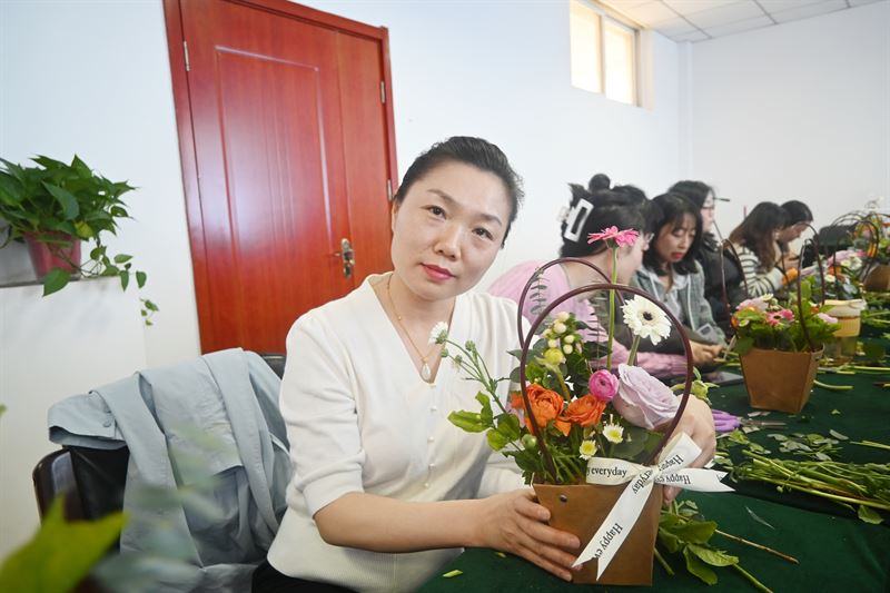 活動(dòng)中,女職工們?cè)谟^看花藝?yán)蠋熓痉恫寤ê螅S躍欲試,紛紛自己動(dòng)手制作,認(rèn)真學(xué)著、剪著,按照花種的顏色,將一朵朵鮮花錯(cuò)落有致地裝飾在花籃中,創(chuàng)作出各自的插花作品;顒(dòng)現(xiàn)場(chǎng),大家有說(shuō)有笑,氛圍十分溫馨,女職工們?cè)谂c花草的交流中,緩解了平時(shí)的工作生活壓力,身心得到了放松。