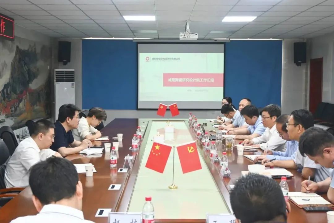 2023年6月7日,中國建材總院黨委委員、副總經(jīng)理(主持工作)侯滌洋一行到咸陽陶瓷院調(diào)研指導工作。中國建材總院辦公室(董事會辦公室)主任夏娟,投資部部長劉登林陪同調(diào)研。咸陽陶瓷院黨委書記、董事長王華主持座談會,黨委副書記、總經(jīng)理張世超作工作匯報。