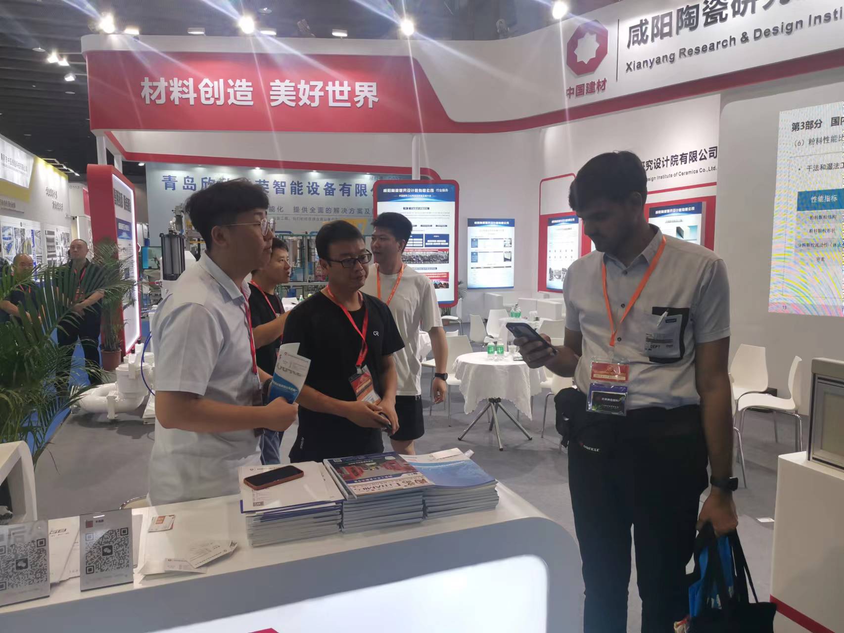本次展會集中展示了咸陽陶瓷院的科技創(chuàng)新技術(shù)及成果,包括:先進(jìn)陶瓷材料、環(huán)保催化劑及工程設(shè)備、干法制粉、YB-300出口型柱塞泵、固廢熱解催化評價平臺、靜摩擦系數(shù)測定儀以及陶瓷磚恢復(fù)系數(shù)測定儀等。我院展臺設(shè)計新穎、顏色燈光鮮亮、格調(diào)醒目,利用多種尺寸的大型噴繪圖片、大型LED屏視頻展示、多臺裝備實(shí)物展品、資料圖書等形式進(jìn)行宣傳推廣,參展期間,我院展臺人流不斷,工作人員專業(yè)熱情地接待各國客戶并進(jìn)行耐心講解,現(xiàn)場交流氣氛熱烈,受到國內(nèi)外客戶的高度關(guān)注,收獲滿滿。
